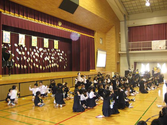 今年の音楽鑑賞会では、広島交響楽団をお招きしました。 モーツアルトの「アイネ・クライネ・ナハト・ムジーク」やエルガーの「威風堂々」など、子どもたちは体全体でオーケストラの生の演奏を楽しみました。 ![]() ↑指揮者体験コーナーの一場面 「カルメン」の前奏曲を堂々と指揮しました。 |