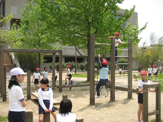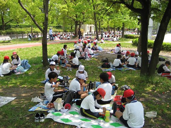 | 5月2日(水) 遠足 | 1年生は6年生のお兄さん、お姉さんと比治山へ、2,3年生は東千田公園、4,5年生は千田公園へ遠足に行きました。 子どもたちは公園にある遊具で遊んだり、友だちとドッチボールや鬼ごっこをしたり、花をつんで花飾りを作ったりと、青空のもとで元気いっぱいにすごしました。 ![]() ![]() |