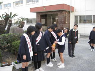 朝、計画委員会の子どもたちが正門や南門に立ち、募金活動を行いました。 ![]() |